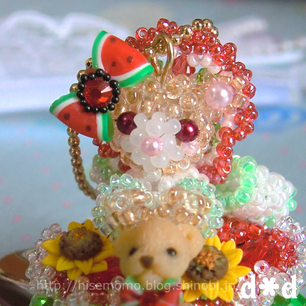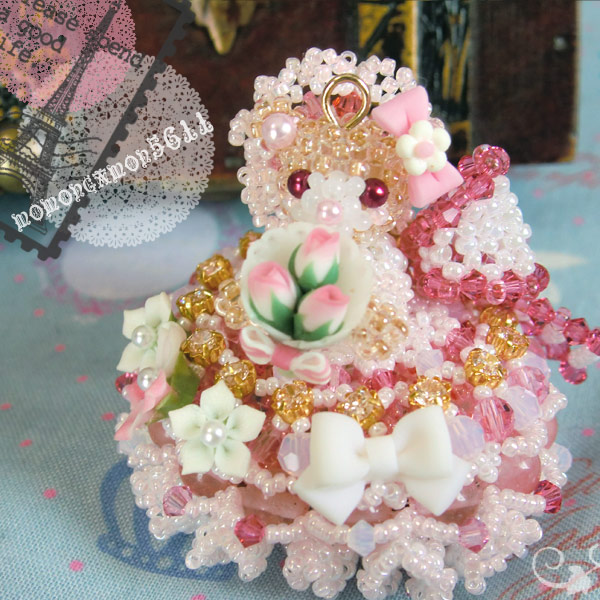 ドレス前面にはももんがーz特選の樹脂粘土のお花とリボン。ニセモモ的にドレスについてる白いリボンがお気に入りですね