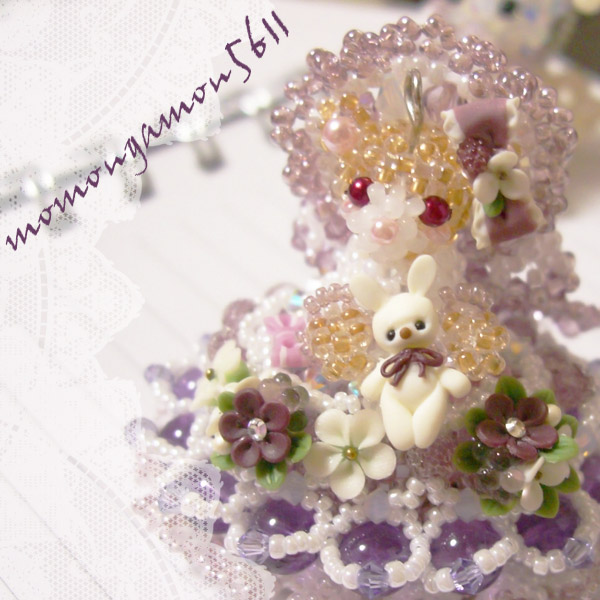 プードルさんは手足が揺れるので、そのたびにキラキラ輝きます。(ニセモモも一時期たくさんつくってました。ほんと可愛いんですよー。パールで表現したモコモコ具合がたまりません)
