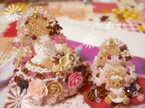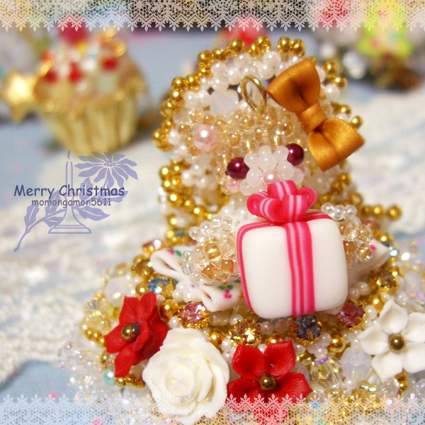 クリスマススタイルなのでゴールドをふんだんに使ってゴージャスさを出し、カラフルなジルコニアで可愛らしい華やかさを足しましたが、ベースがほんのり優しいミルキー色なのでクリスマスの神聖さもしっかり備わったお人形が出来上がりましたよ