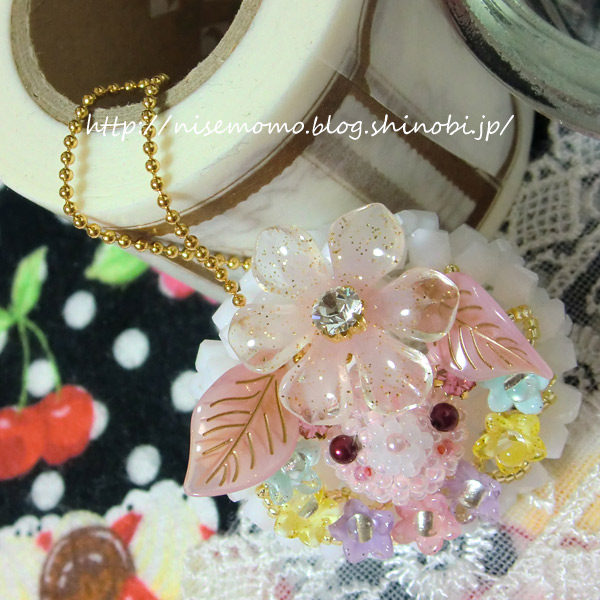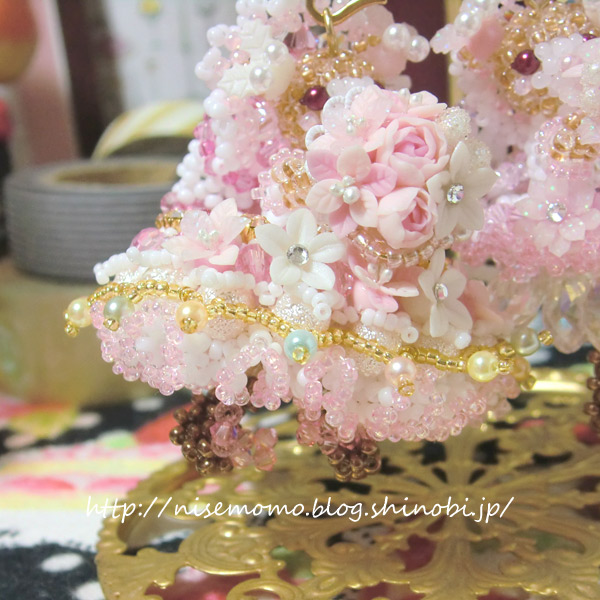 キラキラと輝く、透明感のあるピンクのビーズが秀逸